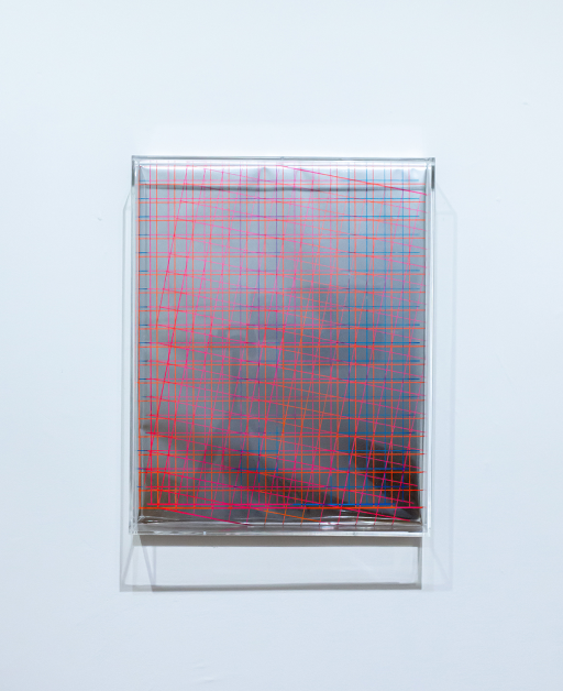 Double Grid, 2021, UV paint on spraypain on mylar, 22 x 18 in.