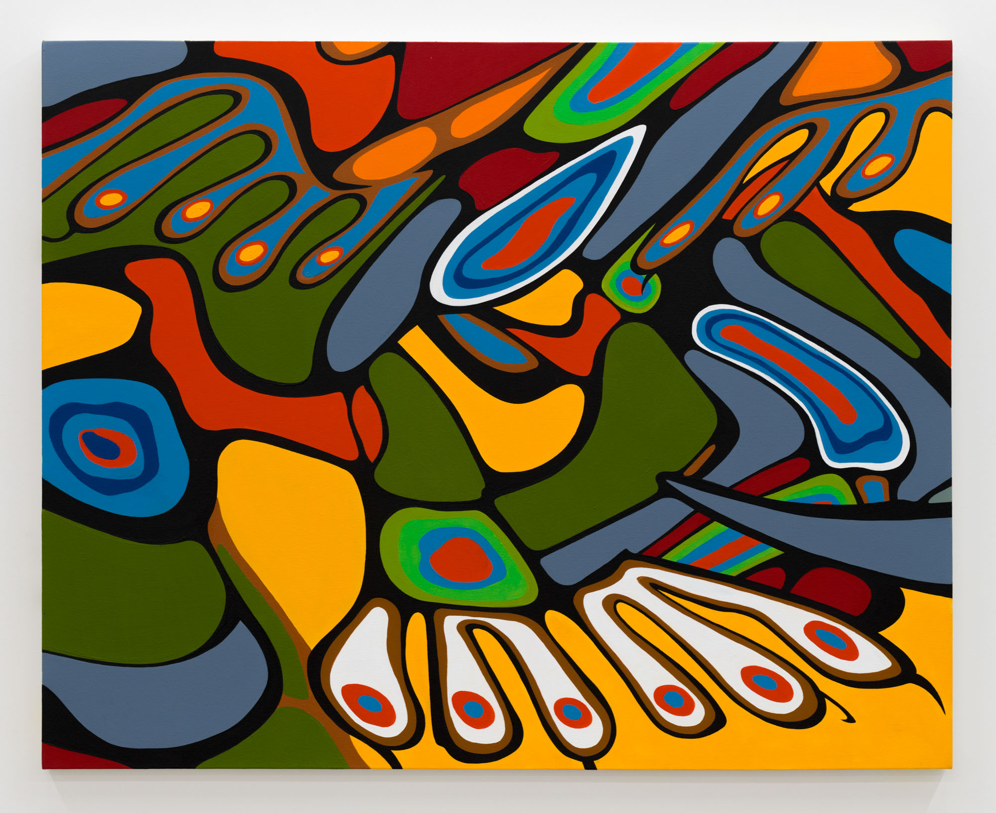 Aanzinaago (Caught in a Transformation) 01, 2024, acrylic on canvas, 48 x 60 in.