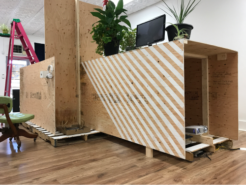 First Things Don’t Come First is a video installation based around a site-specific construction thatuses new and recycled materials with video displays and other materials integrated in thestructure.The six artists selected by Native Art Department International offer a unique array of viewpoints on land and landscape, but share a common motif of environment as active participant. Among the locations these artists operate in is Canada, Sweden, Japan, Greenland; many operate from two countries. Video screens deployed along and within the framework of the structure invite viewers to consider placement and location of video works along with what they are showing. Mixed in are common objects and visual motifs that stand in for human activity such as labor,ceremony, and communication, and commerce. What came First, whether it be physical, environmental, spiritual, mythical, cerebral, emotional, or accidental, is the starting point for these videos.