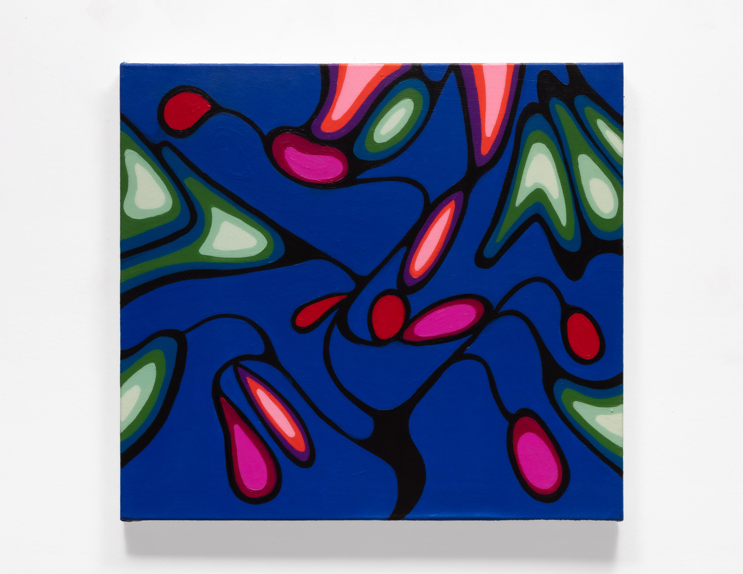 Waabigwan Composition, 2025, acrylic and flashe on canvas, 20 x 22 in.