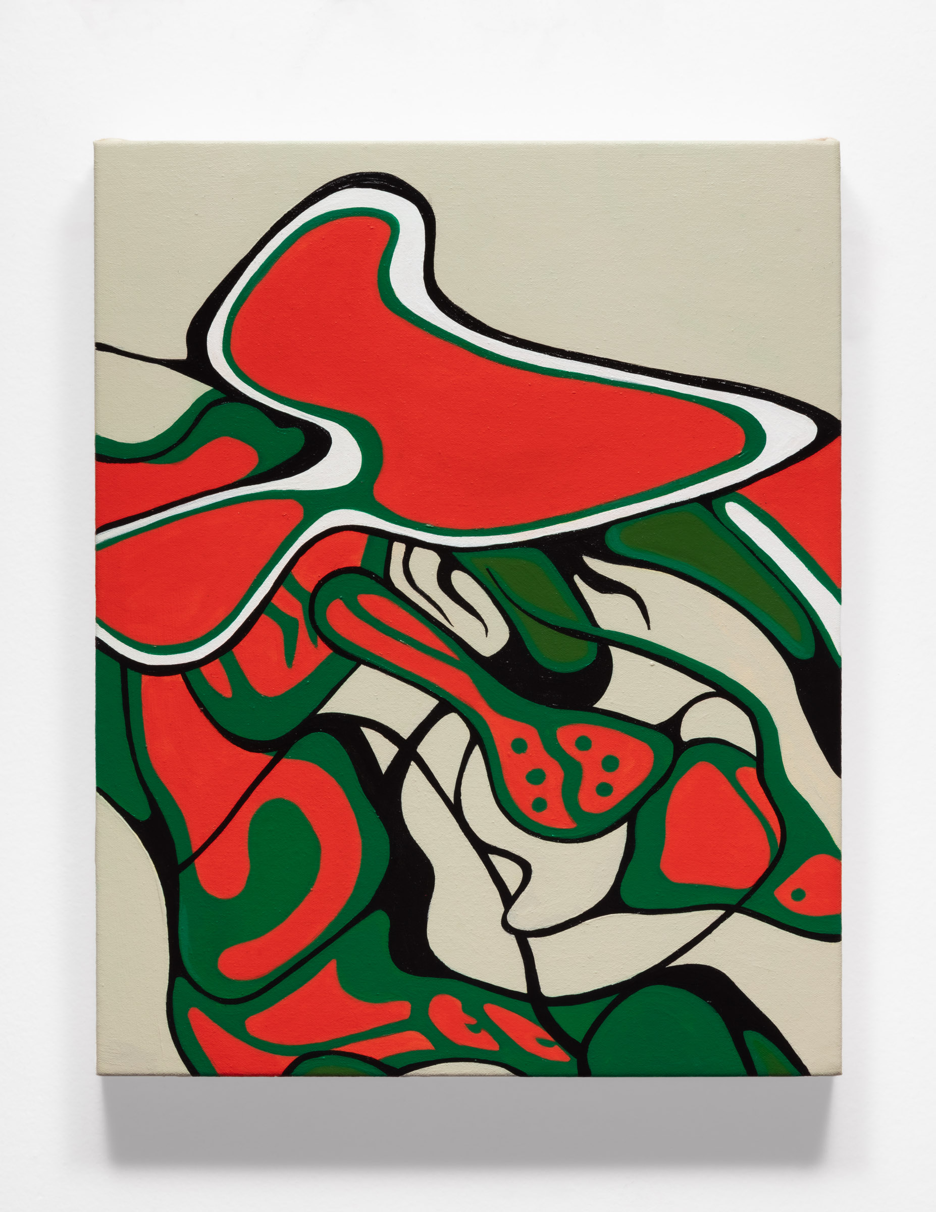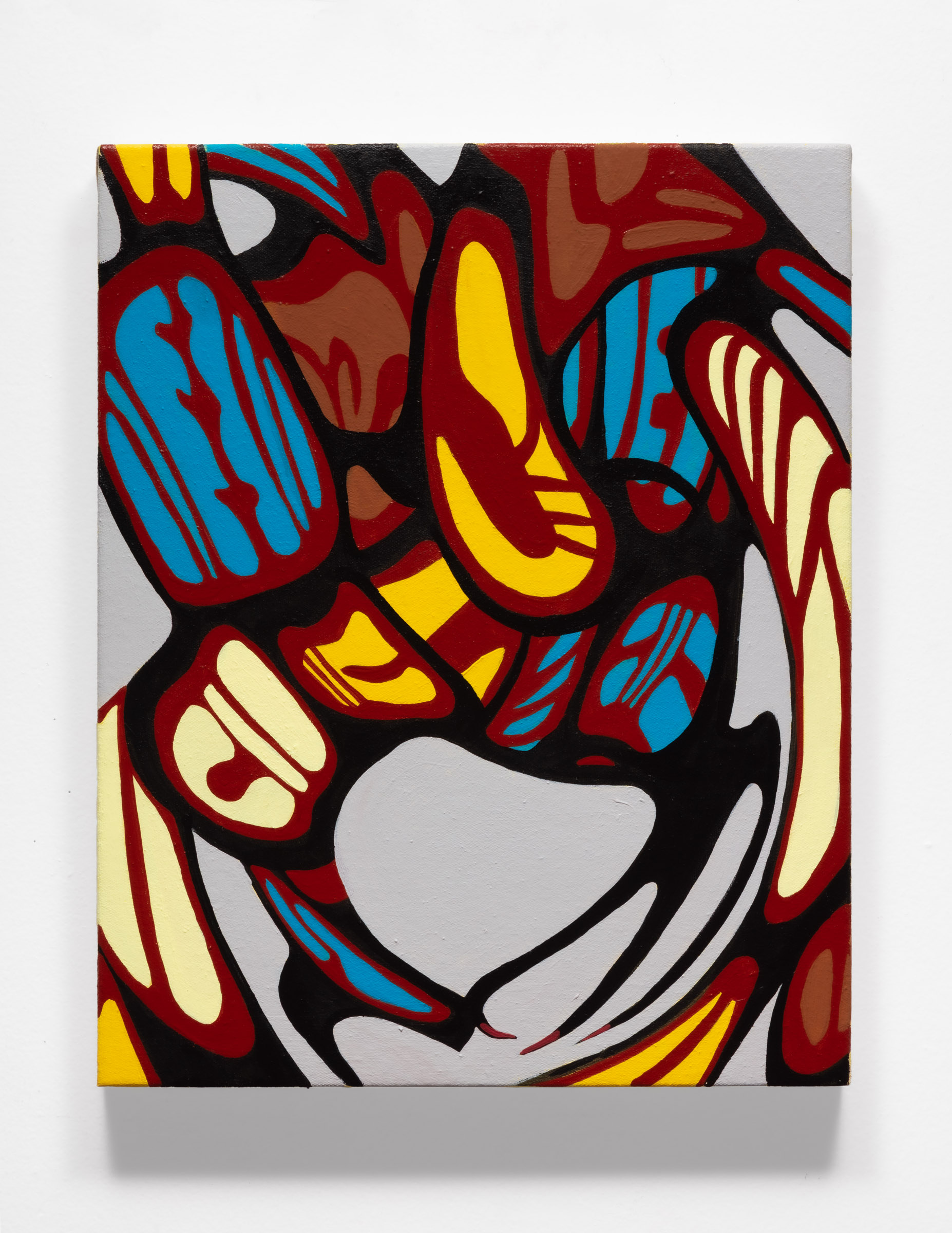 Aanzinaago Composition, 2025, acrylic on canvas on panel, 24 x 18 in.